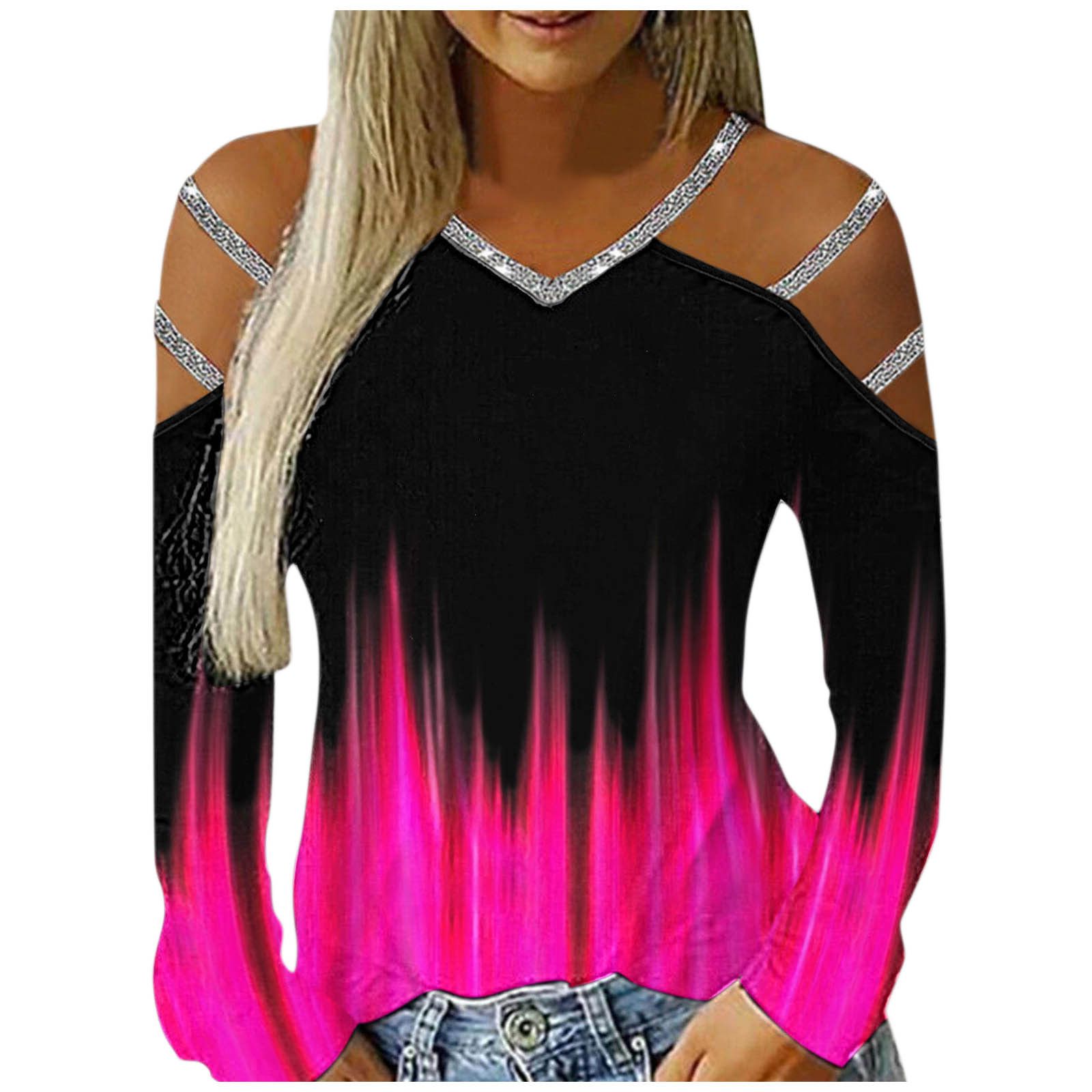 Home > Gradient Printed Women's Shirt Casual Loose Blouses Women Hollow Out Long Sleeves V Neck Off Shoulder Blousess Tops Women
