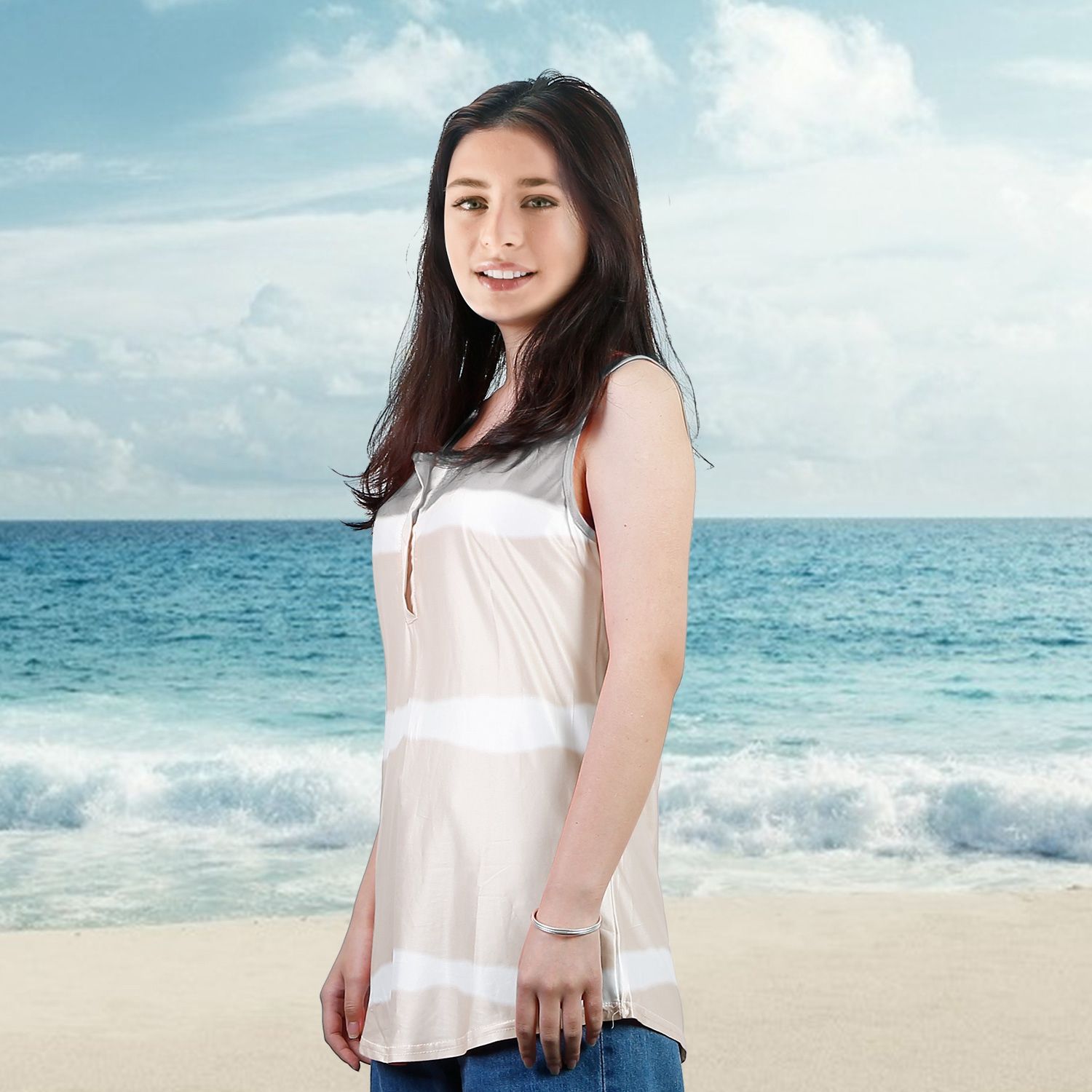 2.Sleeveless, scoop neck, button up, luster, tie-dye unique designs
