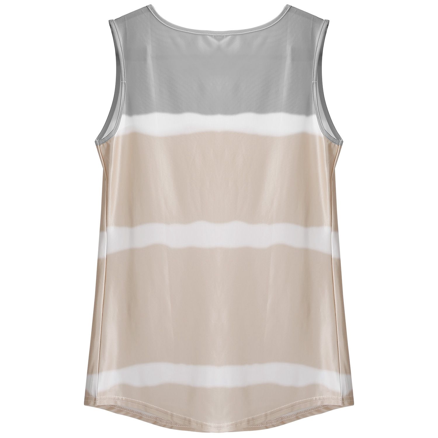 2.Sleeveless, scoop neck, button up, luster, tie-dye unique designs