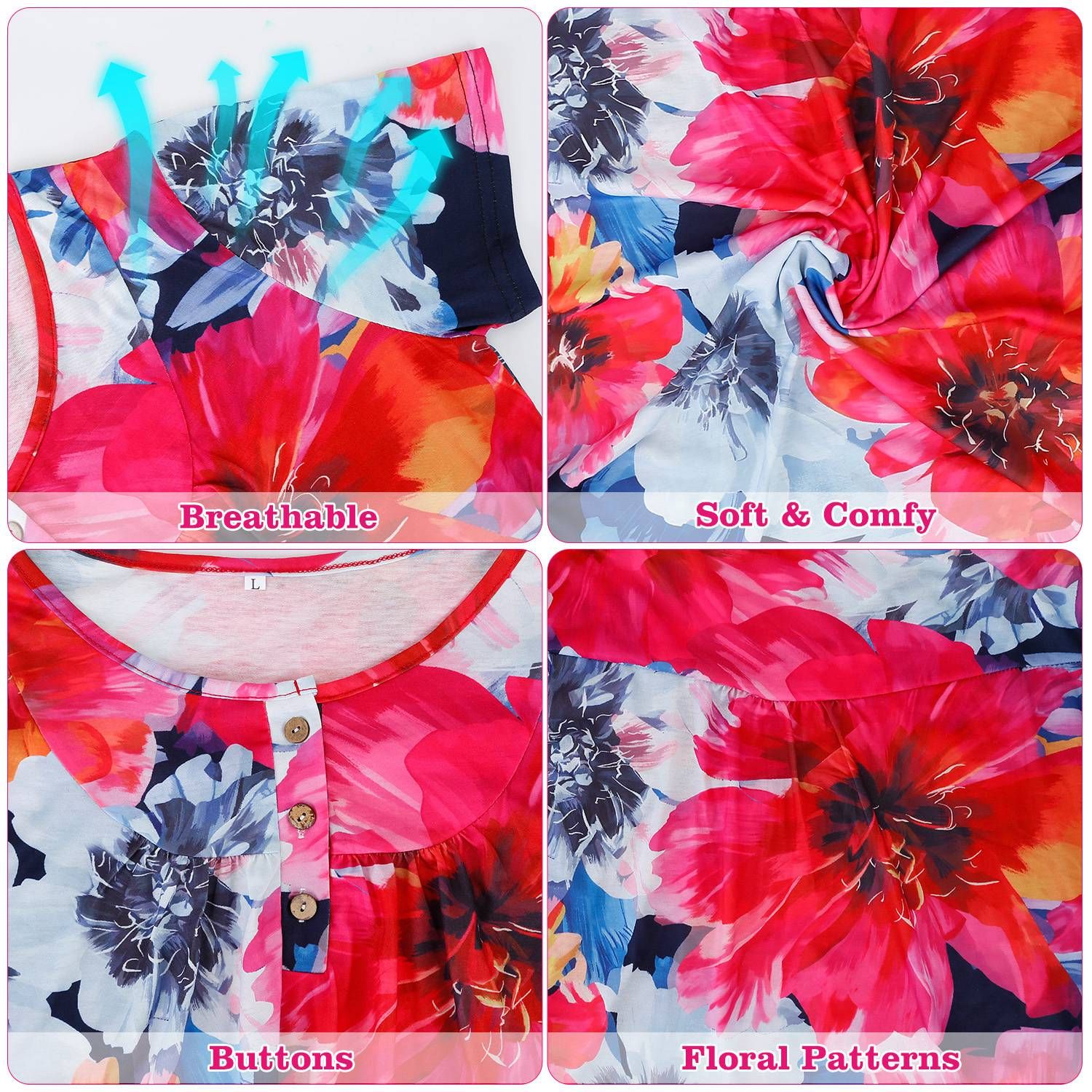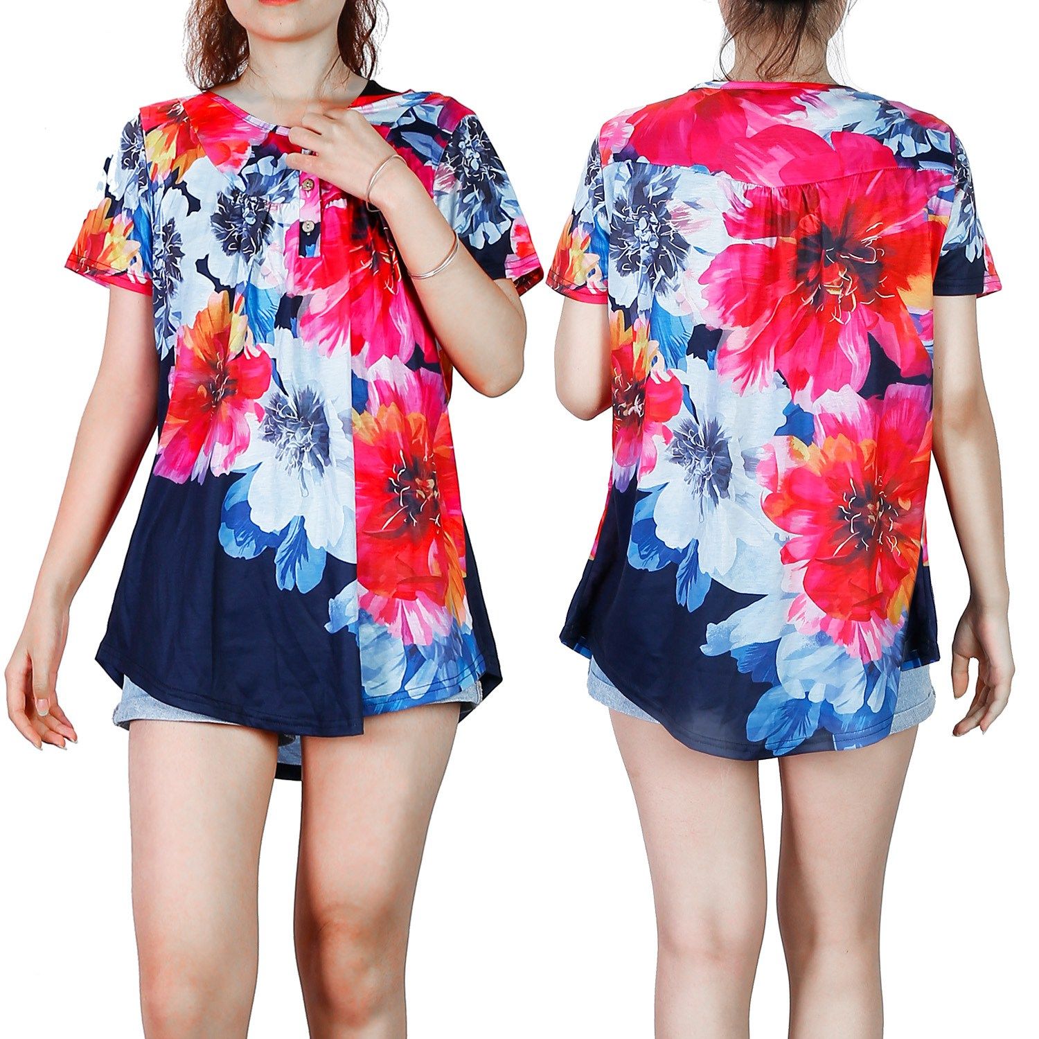 ** Floral Printed Women T-Shirts*:Short sleeve,printed flowers,scoop neck,button up unique designs make this a fashionable casual shirts for ladies. Matches well with short jeans.